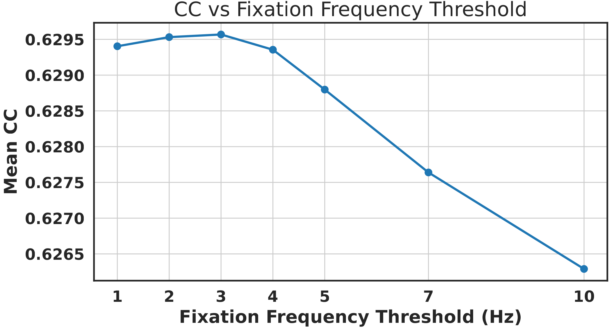 The second post-filtering stage is based on mouse movement frequency. The rationale is that a participant may appear to be watching the video while not actively interacting with the mouse. The distribution shows that most accepted views fall well below 100 Hz. We evaluated several frequency thresholds on the validation benchmark and found that 3 Hz provides the best trade-off. We therefore discard views below 3 Hz and normalize the remaining trajectories to 100 Hz using linear interpolation. Frequency filtering passed 381960 successful views (~93.7%).
