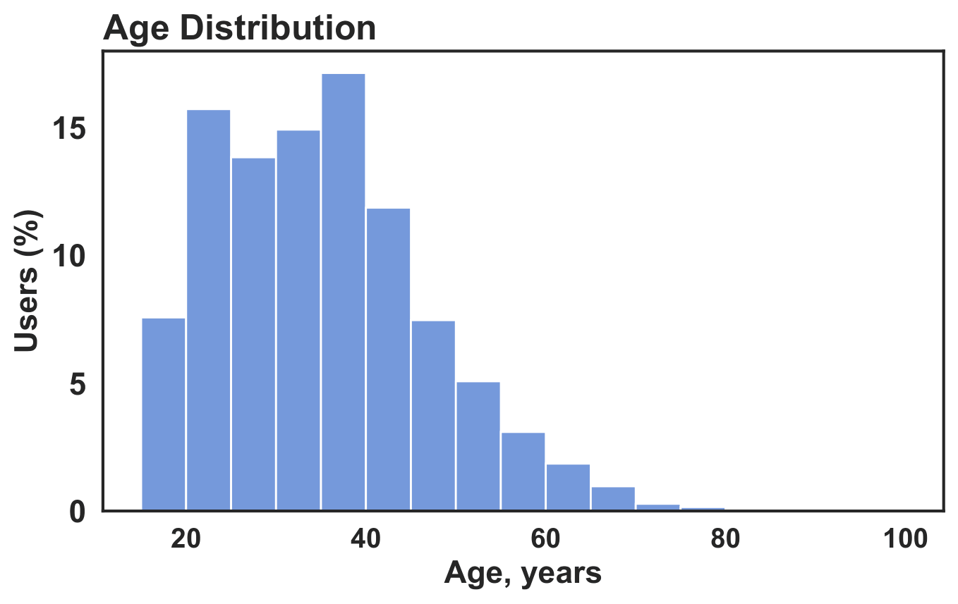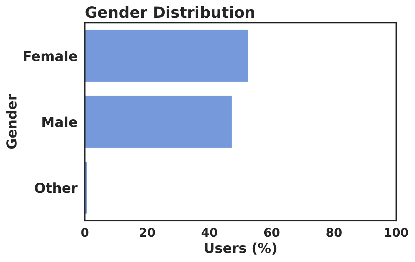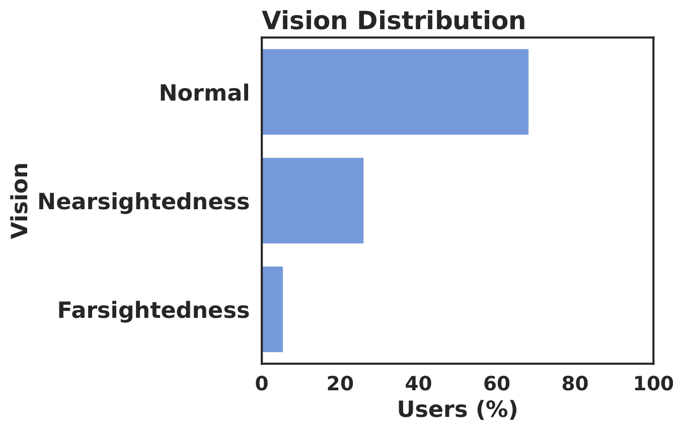 The accepted participant pool is not dominated by a single gender group. The study mainly reflects adult viewing behavior. Most accepted participants reported normal vision.