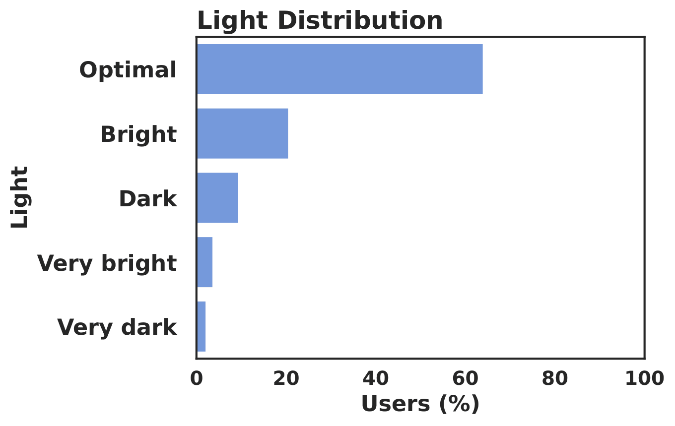 The recordings were collected under realistic everyday lighting conditions. The accepted sessions cover a variety of viewing setups. The 1-5 star ratings were collected from participants as post-task feedback after finishing each video.