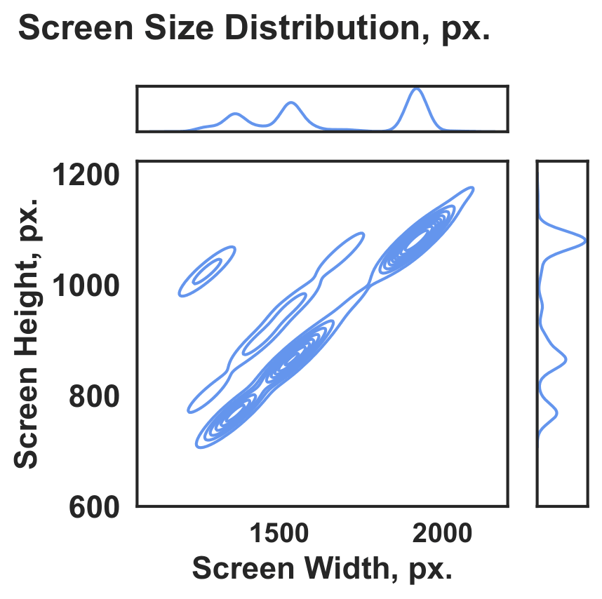 The accepted data span a broad range of screen resolutions and physical screen sizes. The most common were 1920×1080 px displays with 34×19 cm screens.